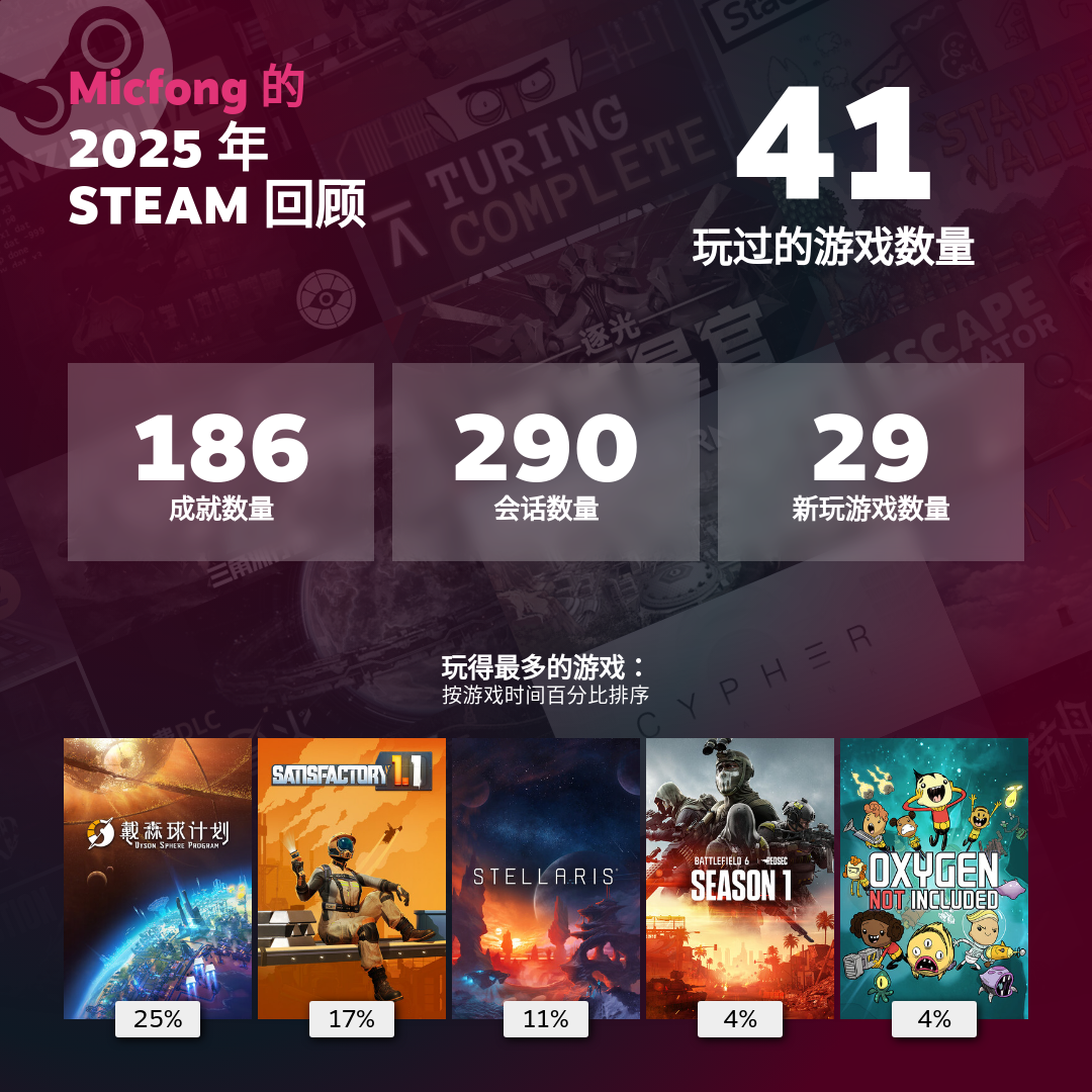 如果感兴趣的话可以看看我的 Steam 年报
